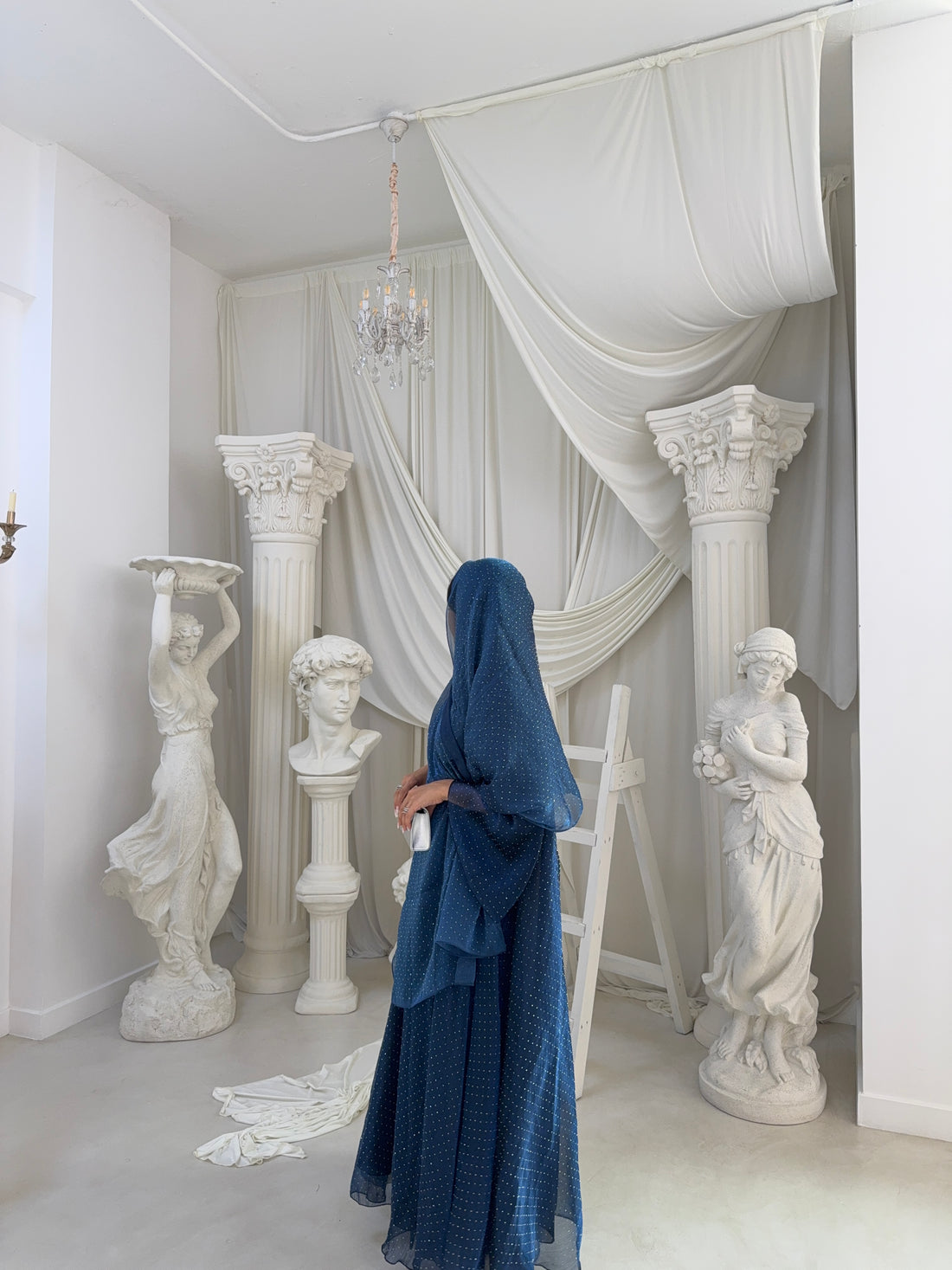 Elegant and timeless, this abaya is made from high-quality Italian jacquard: a soft, flowing fabric...