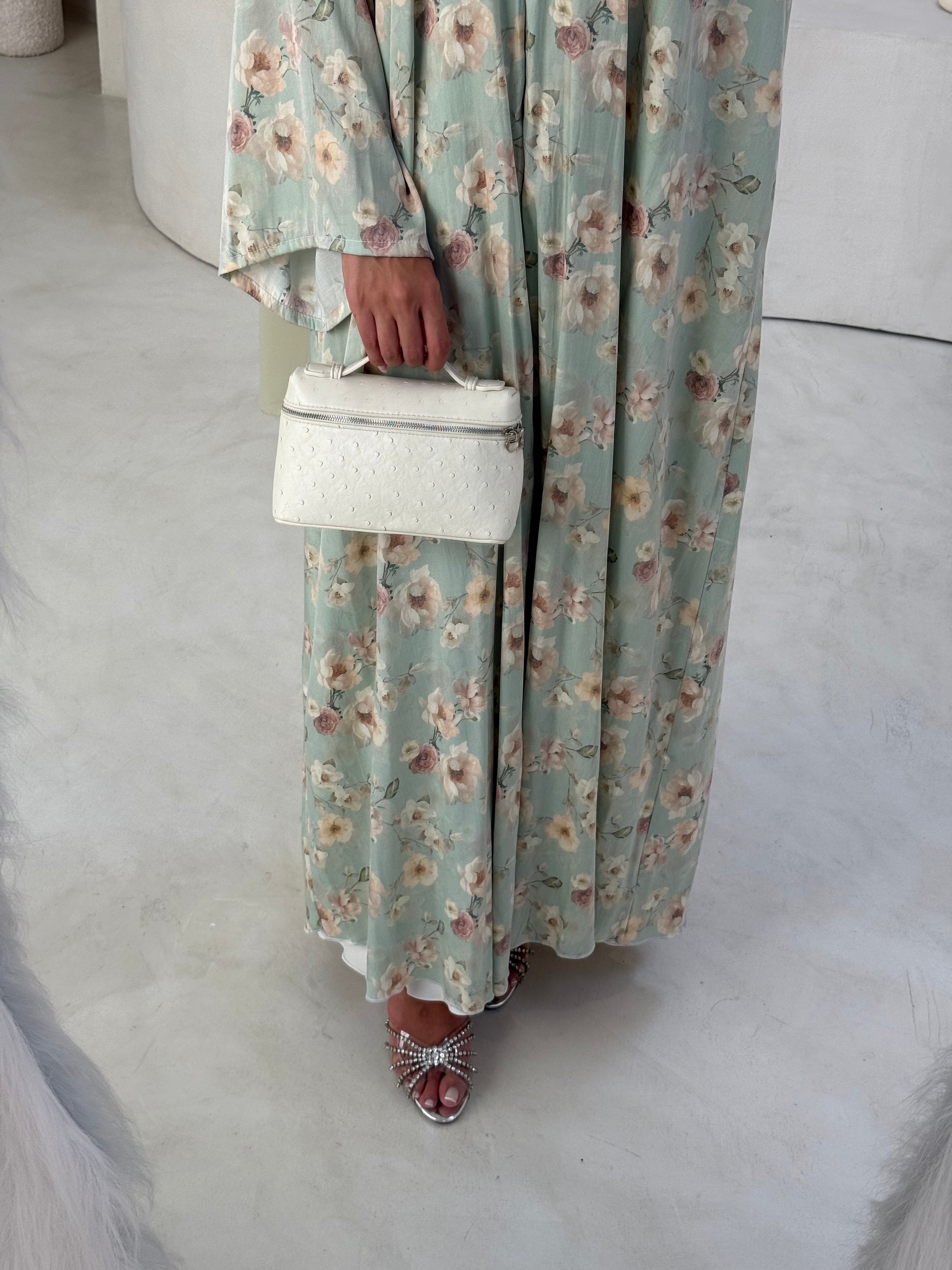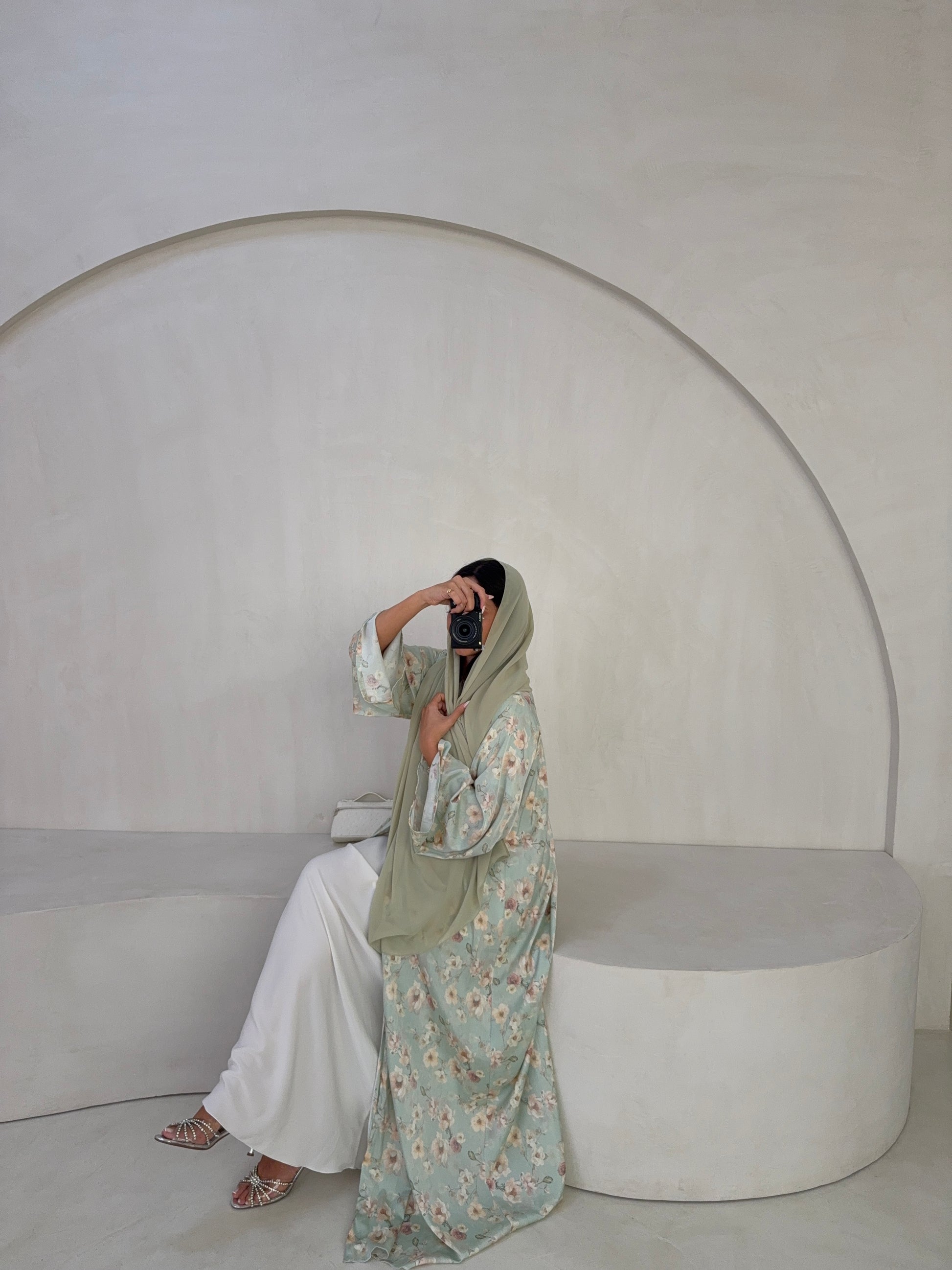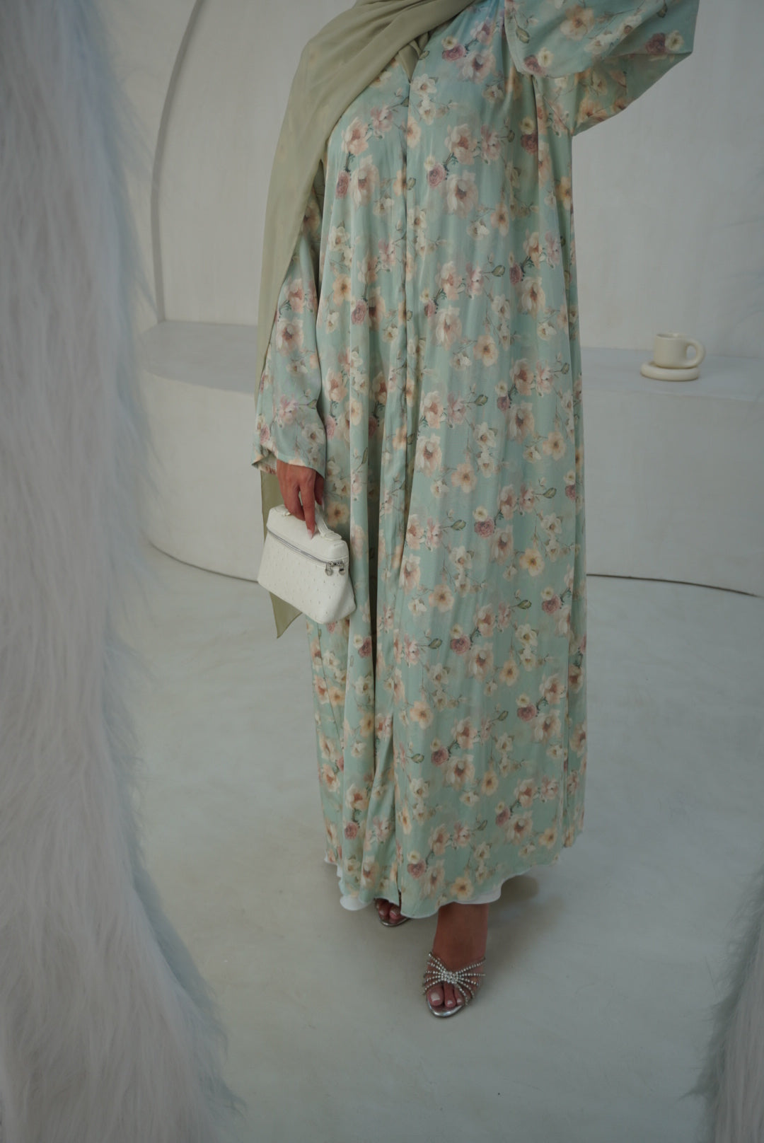 Delicately inspired by the iconic cherry blossoms of Japan, this abaya features a sophisticated, soft, and feminine hue that captures attention effortlessly.
