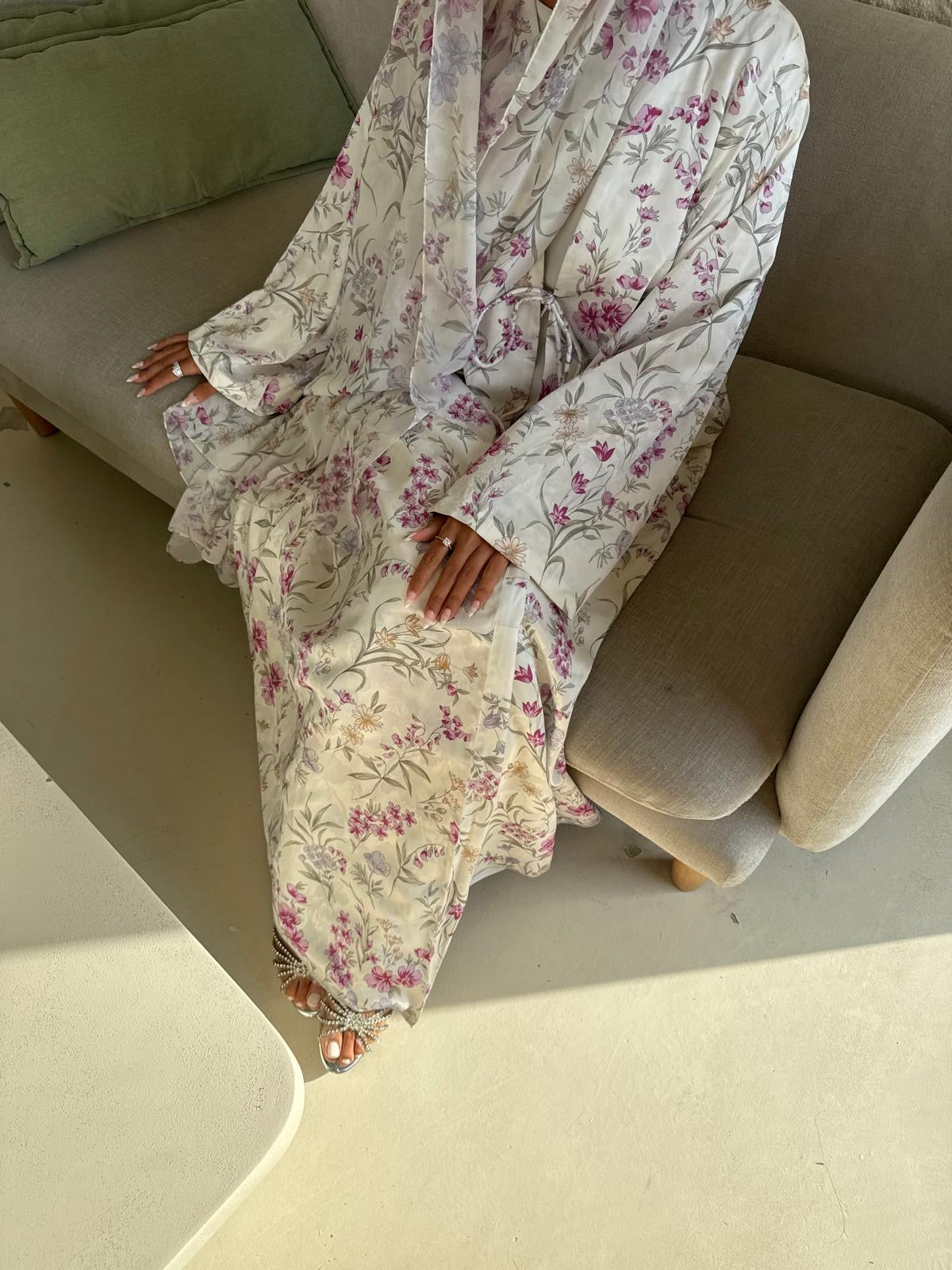 Elegant and timeless, this abaya is made from high-quality Italian jacquard: a soft, flowing fabric that moves beautifully with every step.