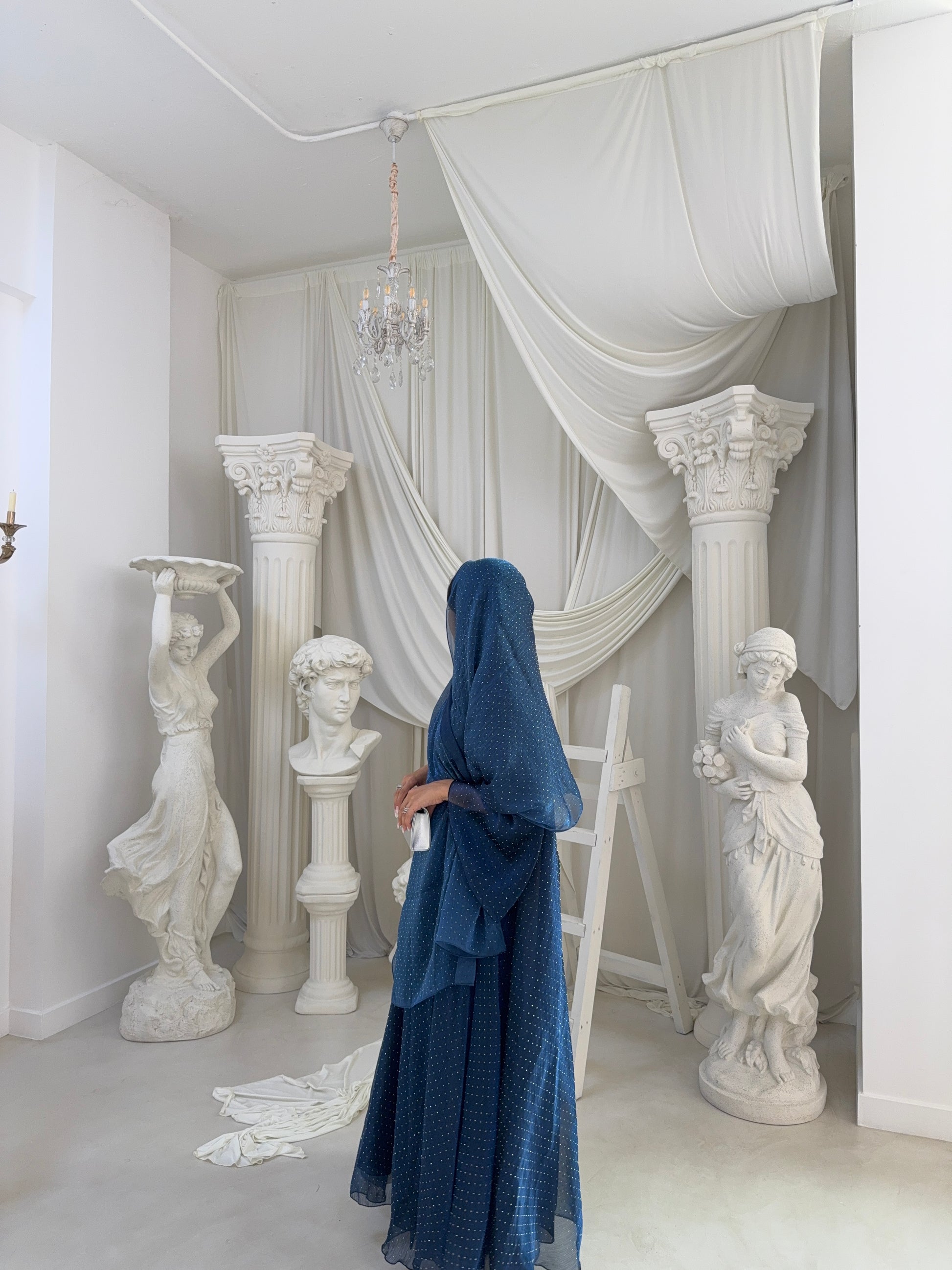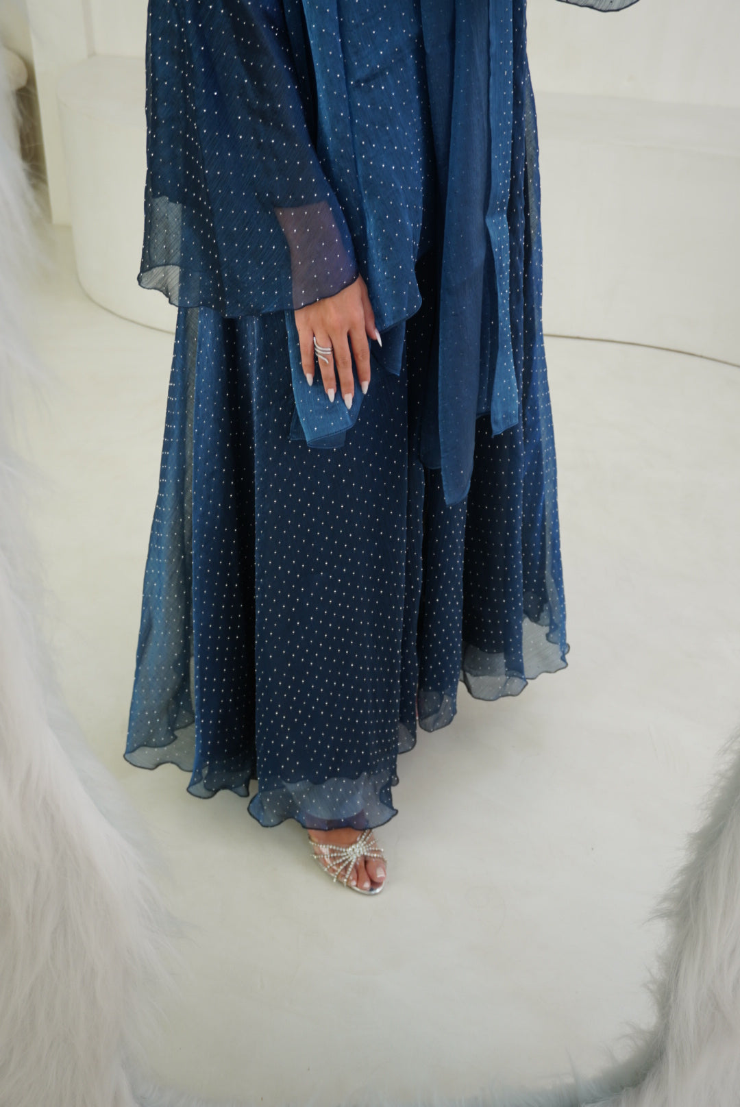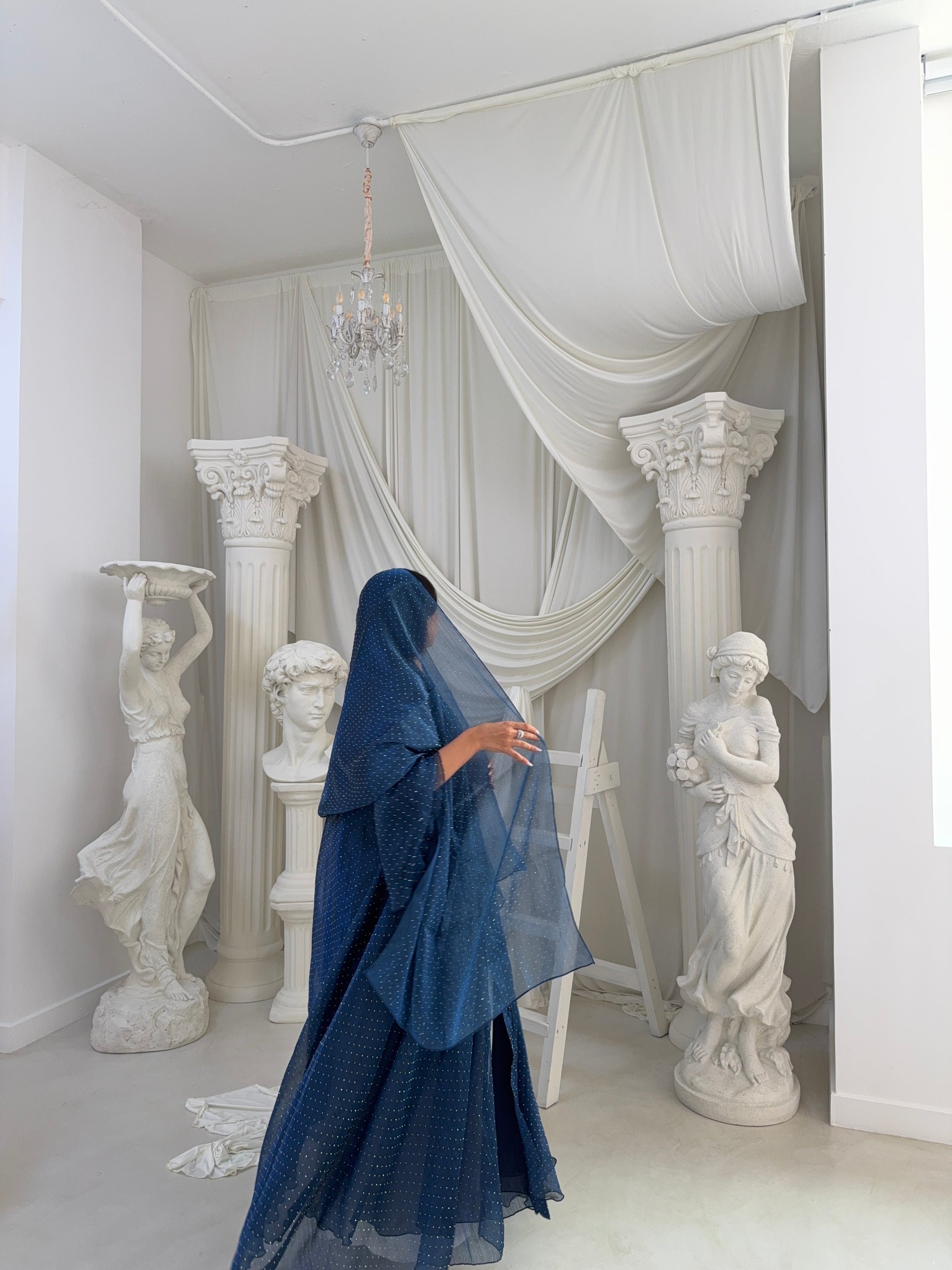 This double-chiffon abaya is designed with movement as its true protagonist.