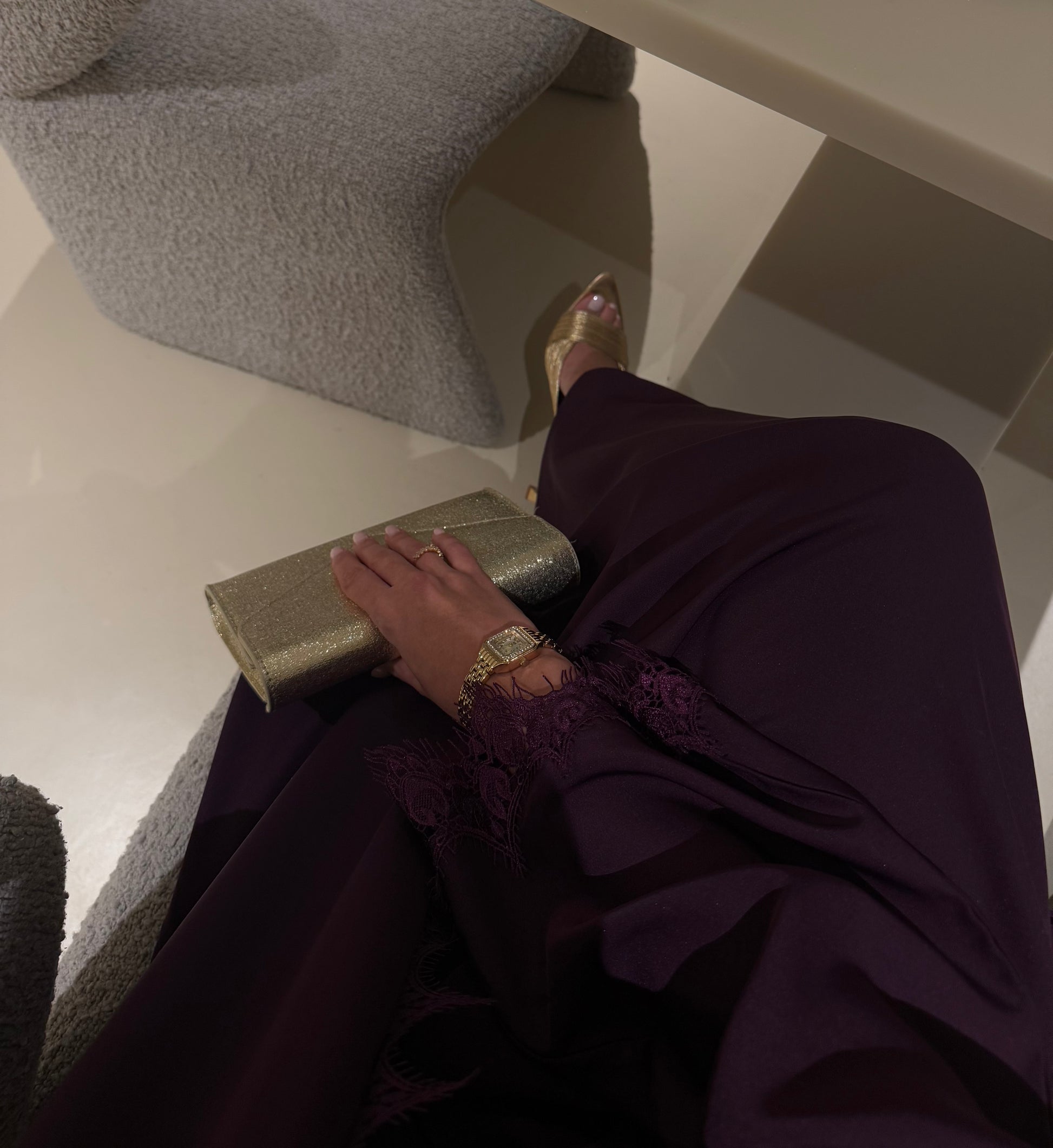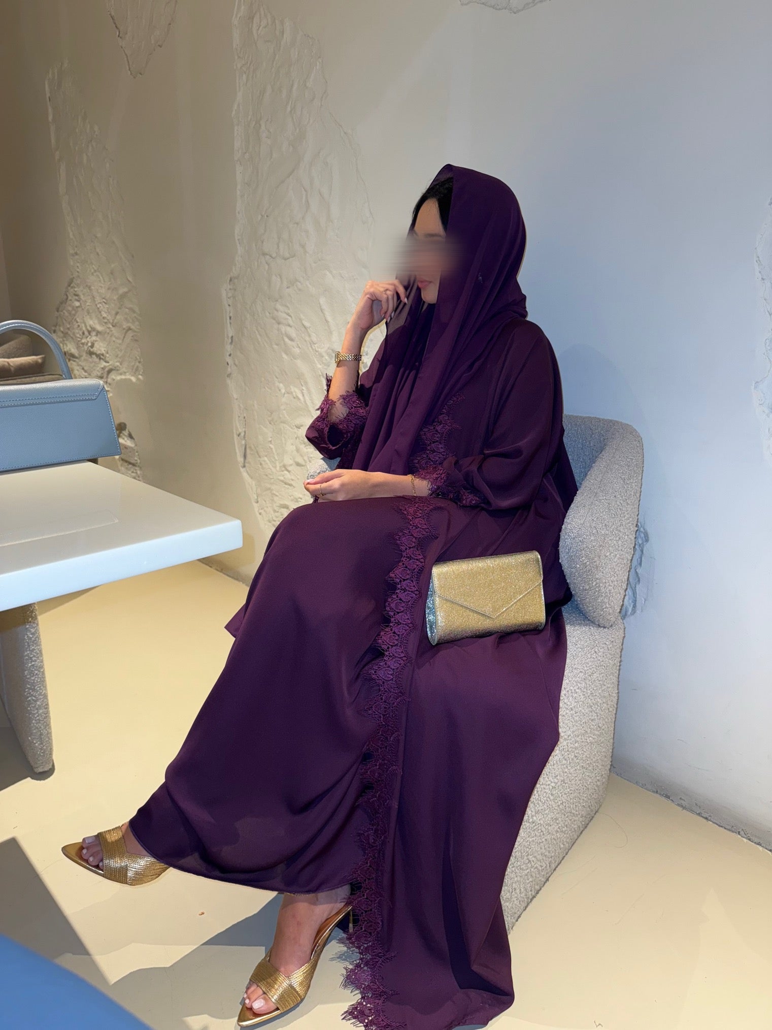 Elevate your style with this luxurious Emirati abaya, featuring delicate lace details on the sleeves and silhouette. A perfect blend of traditional craftsmanship and modern elegance, offering both comfort and sophistication for a timeless wardrobe addition.