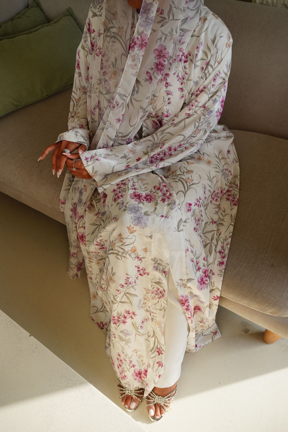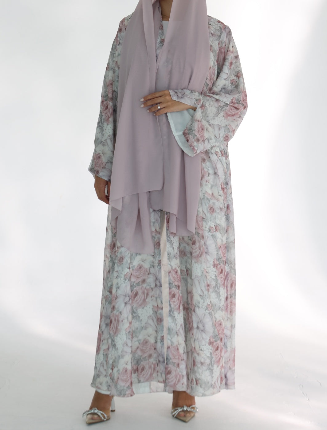 Delicately inspired by the iconic cherry blossoms of Japan, this abaya features a sophisticated, soft,...