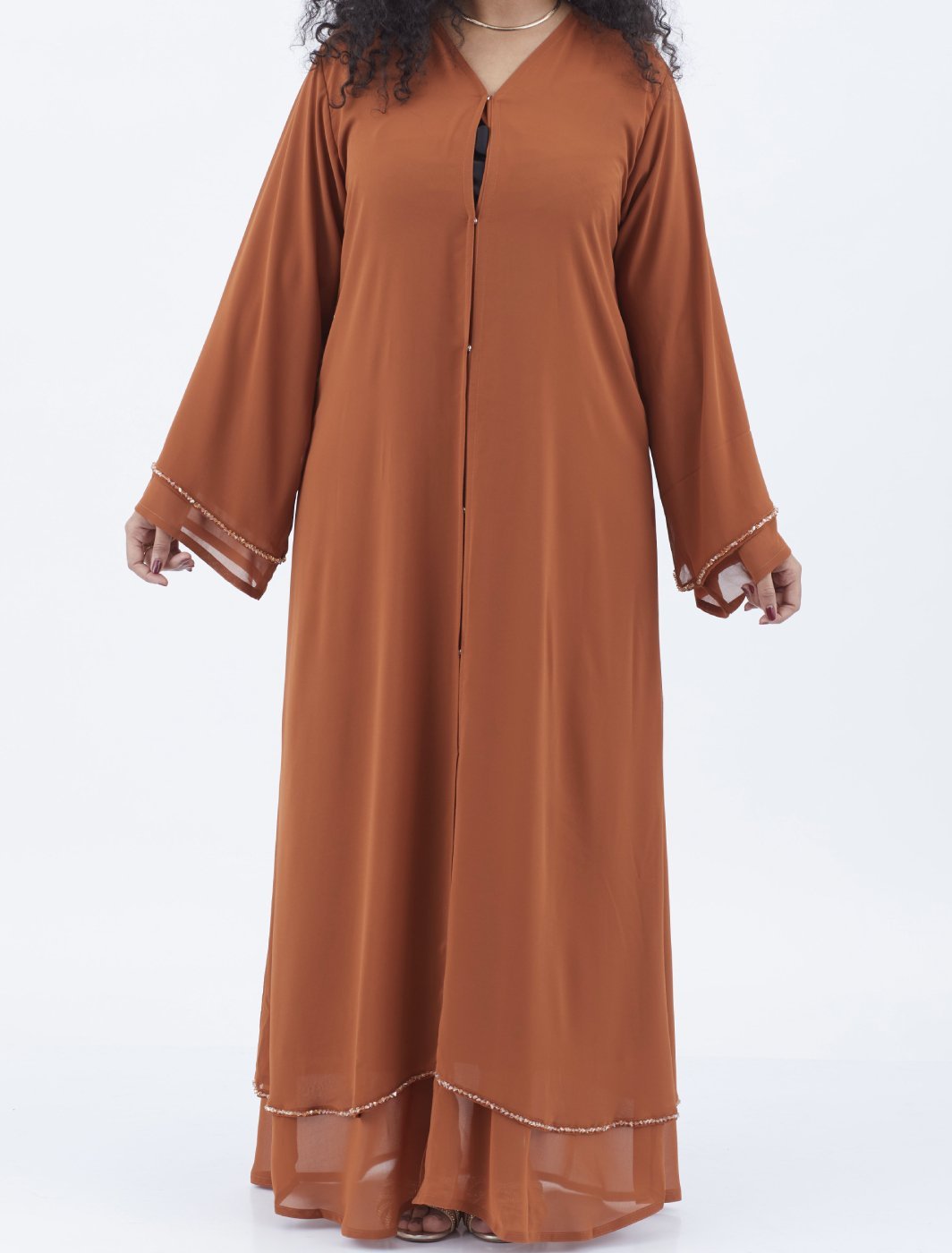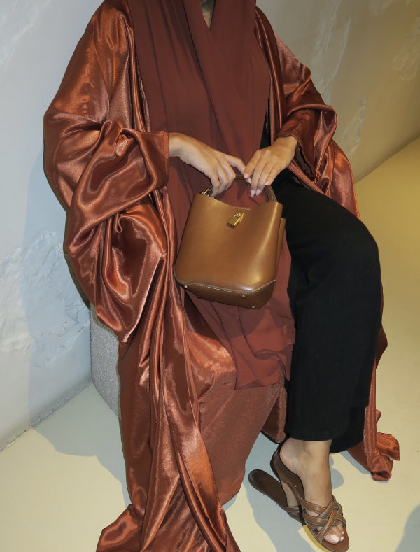 Luxury Emirati ‘bisht’ style abaya in an brown shade. It features a stunning golden shine...