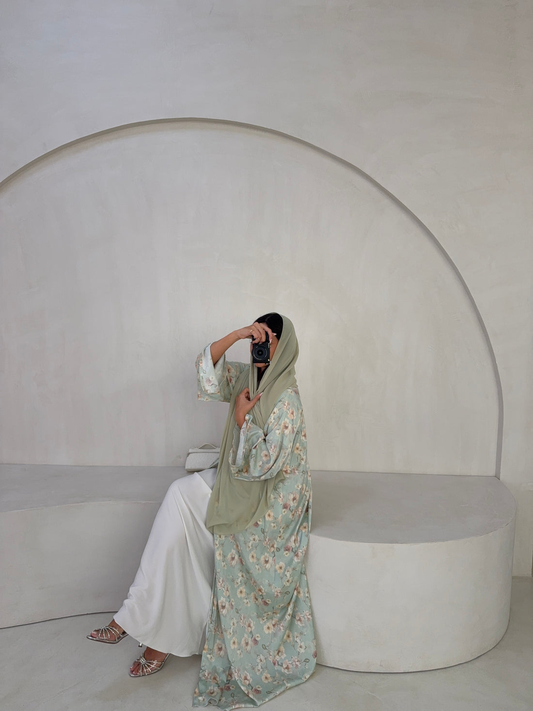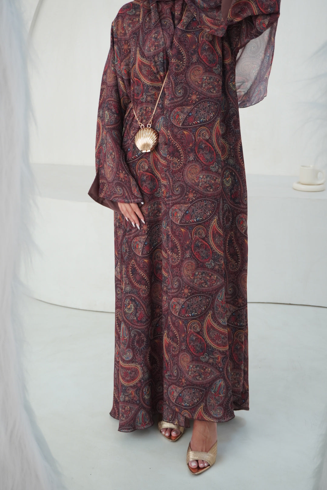 Elegant and timeless, this abaya is made from high-quality Italian jacquard: a soft, flowing fabric...